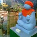 ねぇ お地蔵様 あなた様のお顔を山形の駅構内で拝見した時なんだか「ホッ・・」として足を止めました。赤い前垂れが可愛くて思わず手を合わせて一言「おばんです!」。まあ!すだれの向こうは、いで湯の町らしくミニ温泉が箱庭のように作られ、見事な湯けむりなぞ上がっているではありませんか。”ディスカバージャパン”を彷彿とさせ「よし、仕事前の一風呂といくか!!」