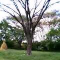 ケヤキの古木が年月で、枝葉という家族を守りつつも孤高とそびえている。この季節でも周りの花々を寄せつけない風情は以前と同じ。