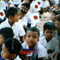 あぁ その先には白のシャツ 紺のズボン スカートの子供たちが両国の旗を振って〜〜白い歯がこぼれているではありませんか