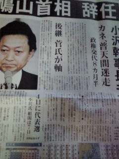 ”ひよどり”に誘われて政界を去ろうとしているんですね鳩山さん。写真:(辞任を報道した2日付新聞)