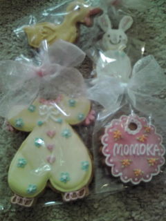 写真:(娘プロデュースの杏の花・ワンピース・うさぎ他の”杏花クッキー”)