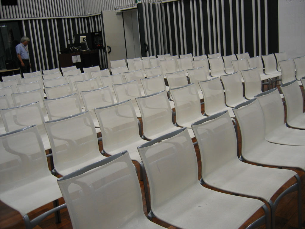 椅子並べは失敗でした。やはり隙間を作り扇型に丸く並べないとこんなスタジオは皆さんに見えにくいのでした・・・本当にごめんなさい。