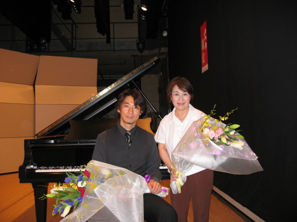 特攻隊員が『死ぬ前に1度だけ思いっきりピアノを弾かせてください』と切願して鍵盤を・・・。それはピアニスト中島さんではなく明日知覧の基地へ飛び立つ1隊員の哀ないまでの真摯で崇高な姿でした! 写真:(終了後ホッとした2人)