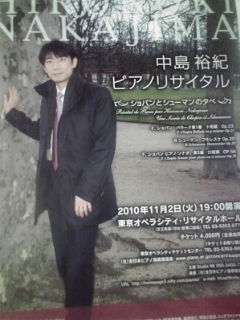 11月2日はピアニスト中島裕紀さんのリサイタル日です。私の仲間もお嬢さんがピアニストで海外で頑張っていらっしゃるというのでこの日を1年前からとても楽しみに待ってくれています。