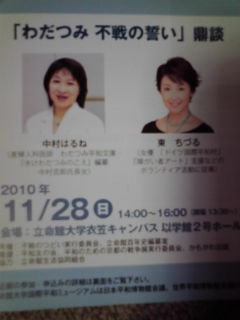 でもその間 又奔走していましたよ。以前から楽しみにしていた立命館大学平和ミュージアム訪問を11月28日(日)日帰りで。午後からは”「わだつみ像」生誕60周年記念 像と共に未来を守れー”の鼎談に参加してきました。