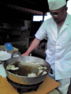 萱野高原一帯で採れた山菜(〜〜珍しいものもありましたが・・・ごめんなさい。名前を忘れました)を、ぴっかぴっかの油で揚げていただきました。ながた荘からわざわざ料理長直々おいでくださいました。