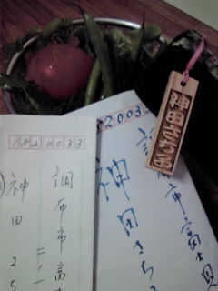 この時期 さりげない便り、心遣いは汗も引っ込む何よりの贈り物となりました。 写真:(ケースにつけた彫り物のネーム札と便り2通。暗く写りが悪いのですが手作り野菜も)