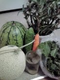 写真:(朝市でのスイカ、アロエまで拝受。毎朝1杯の昆布水)