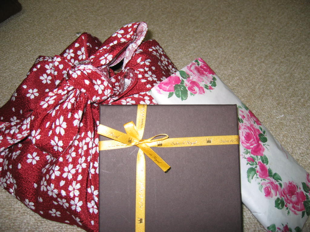 差し入れは地元宇治の新茶、大阪名品をちりめんの桜模様の風呂敷に包まれて・・・