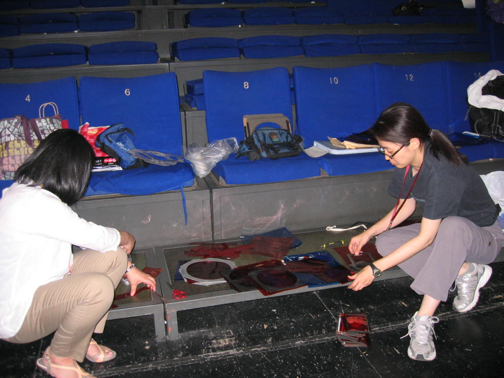 首都劇場担当の婁衛東さんはじめ、照明の米田知華さんほかボランティアは深夜に及ぶまで準備に頑張りました!