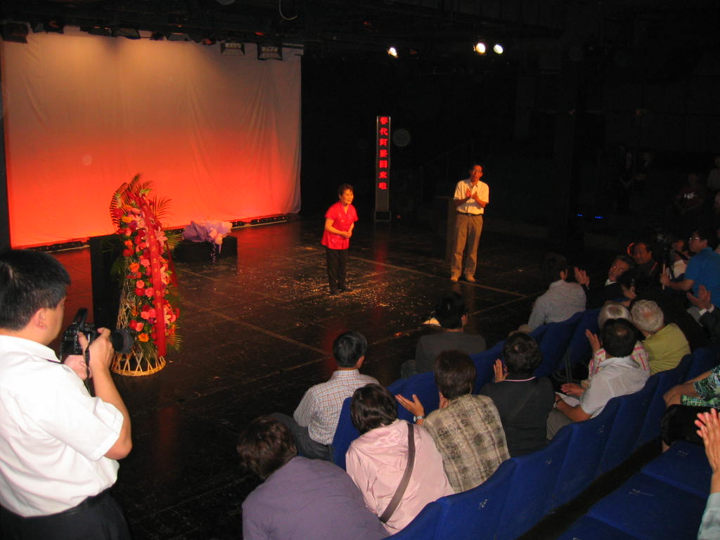 1000人位収容の講堂(ホール)には、北京在小寺記者の奔走で学生・市民そしてマスコミ関係者ら多数の観客を迎えて無事終了!気付いたら私は終了後、洪女士の息子さん(8歳)からの大きな花束を手にしていました・・・。