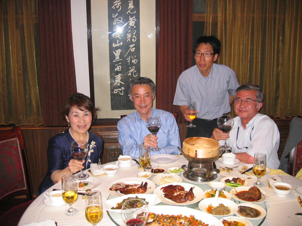 写真:(右より小寺記者、婁衛東さん、山田重夫公使らと北京宮にて)