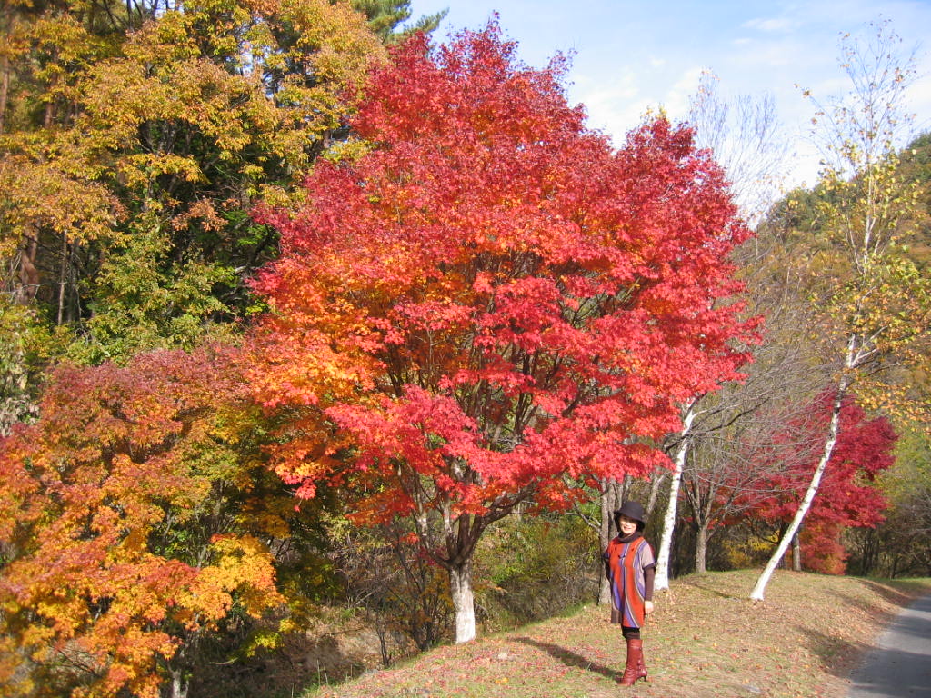 こんな言葉を交わし合いながら、いつしか皆さんとのもみじ湖畔散策は暮れていったのでした。写真:(このかえでも色鮮やか!)