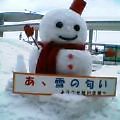 空港では愛嬌たっぷりの「雪だるま」が出迎えです。サラサラした粉雪が舞ったかと思うと薄っすらと明るい日がさす・・比布(ピップはCMで名前が通っている) 剣淵(絵本の里)を過ぎると天塩川と剣淵川が交わり悠久な大河へとーーその「洲」でもある士別市に到着。