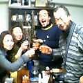あら〜〜部屋の桃の花がいつの間にか開いてるわ・・・!! (写真: 酩酊真っ只中の仲間)