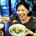 (写真: どんぶりごと抱え込み”ウマイ”とまなみさん)