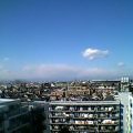 思い立ってマンションの9Fへ上がり 富士山を撮ろうと考えました。時間が少し遅れたのか 多摩の山々は峰がボンヤリとして、冬だったらくっきりと見える筈の富士山が全く見えずでした。