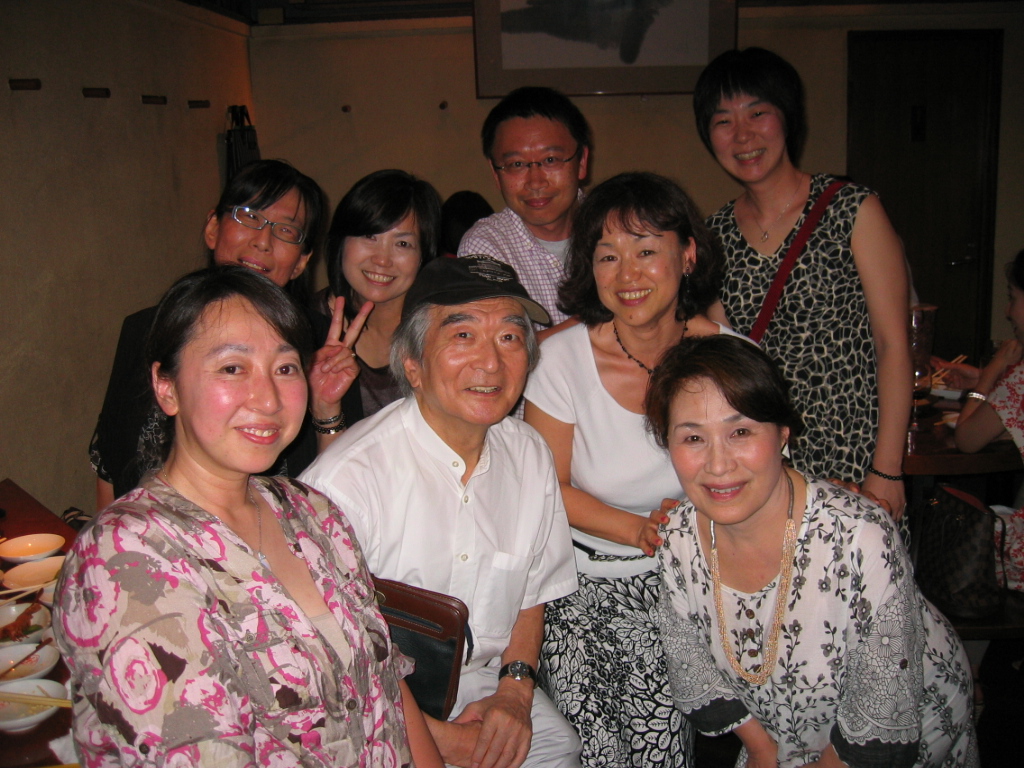 写真:(終了後粋な落語で笑わしてくださった小澤幹雄さんらを囲んで)