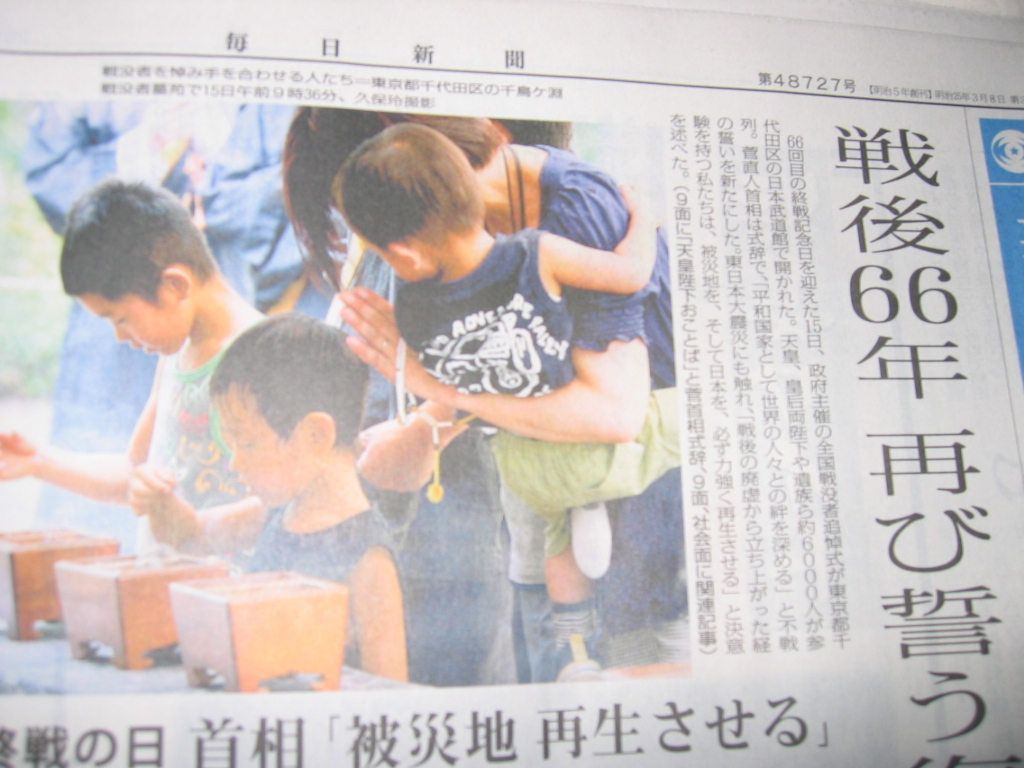 写真:(2011/8/15日毎日新聞より)