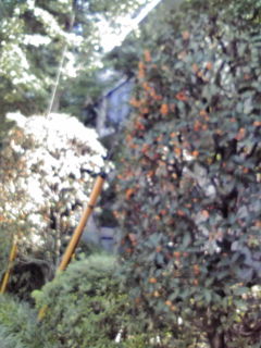 黄色い極細花びらがこぼれ始めたら又地面に鼻を近づけてみよう 写真:(住宅街のキンモクセイ)